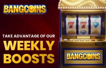 BangCoins is a sweepstakes casino, which means you cannot deposit funds and won’t find any traditional deposit bonuses. Instead, you purchase Gold Coin bundles that come with bonus Sweeps Coins. As a new user, you can claim up to a 200% bonus on your first Gold Coin purchase. In addition, there are weekly boosts that offer 10% extra Sweeps Coins on Wednesdays, 15% on Fridays, and 20% on Sundays.