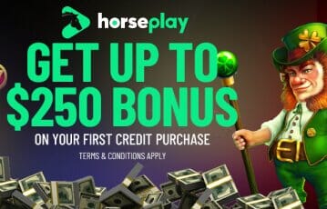 You don’t need any bonus codes to claim the welcome bonus at Horseplay or any of the ongoing promotions. If you’d like to receive the 100% first purchase bonus, you’ll need to create an account, as this offer is only available to new players. Then you’ll need to deposit funds and purchase a credit package of at least $10 or more. Once you’ve done this, you’ll then receive a 100% match of your purchase in bonus credits.