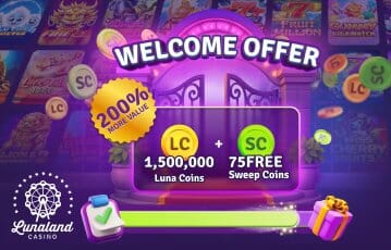 Creating an account at Lunaland makes you eligible for a welcome bonus. Right off the bat, you will receive 100,000 Luna Coins and 2 Sweeps Coins. All you need to do to claim this offer is verify your email address.