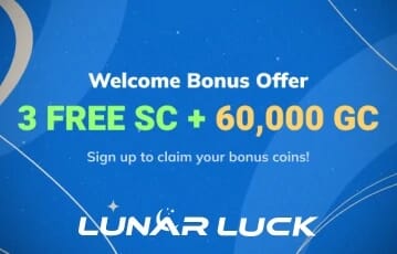 Lunar Luck welcomes new players on board with a bonus of 60,000 Gold Coins and 3 Sweepstakes Coins.
