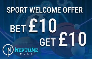 So depending on where you’re based, you’re likely to see at least a couple of welcome offers for new customers at NeptunePlay. These will typically tend to be focused on either casino gaming or sports betting.
