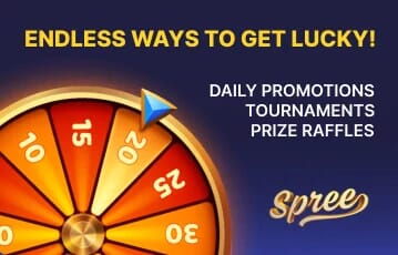 There are more bonuses at Spree, offering free GC and SC. They include the daily login bonus, on-site promotions, referral bonus, social media giveaways, and various contests.