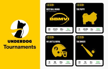 Players must be at least 18 years old (19+ in AL and NE; 19+ in CO for select games; 21+ in AZ, MA, and VA) and located in a state where Underdog is available. See terms and conditions for full details. Offer not available in MD, MI, NJ, OH, NY, or PA.