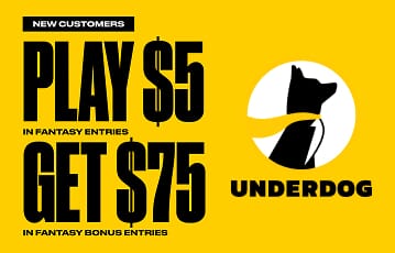 The $75 in fantasy bonus entries you can get from the Underdog promo code can only be credited when you make a $5 deposit and play $5. So you don't want to deposit less than required.