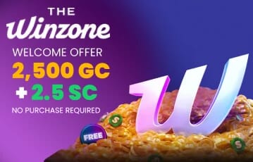 The Win Zone gives newcomers 2,500 GC and 2.5 SC just for signing up - no promo code needed.